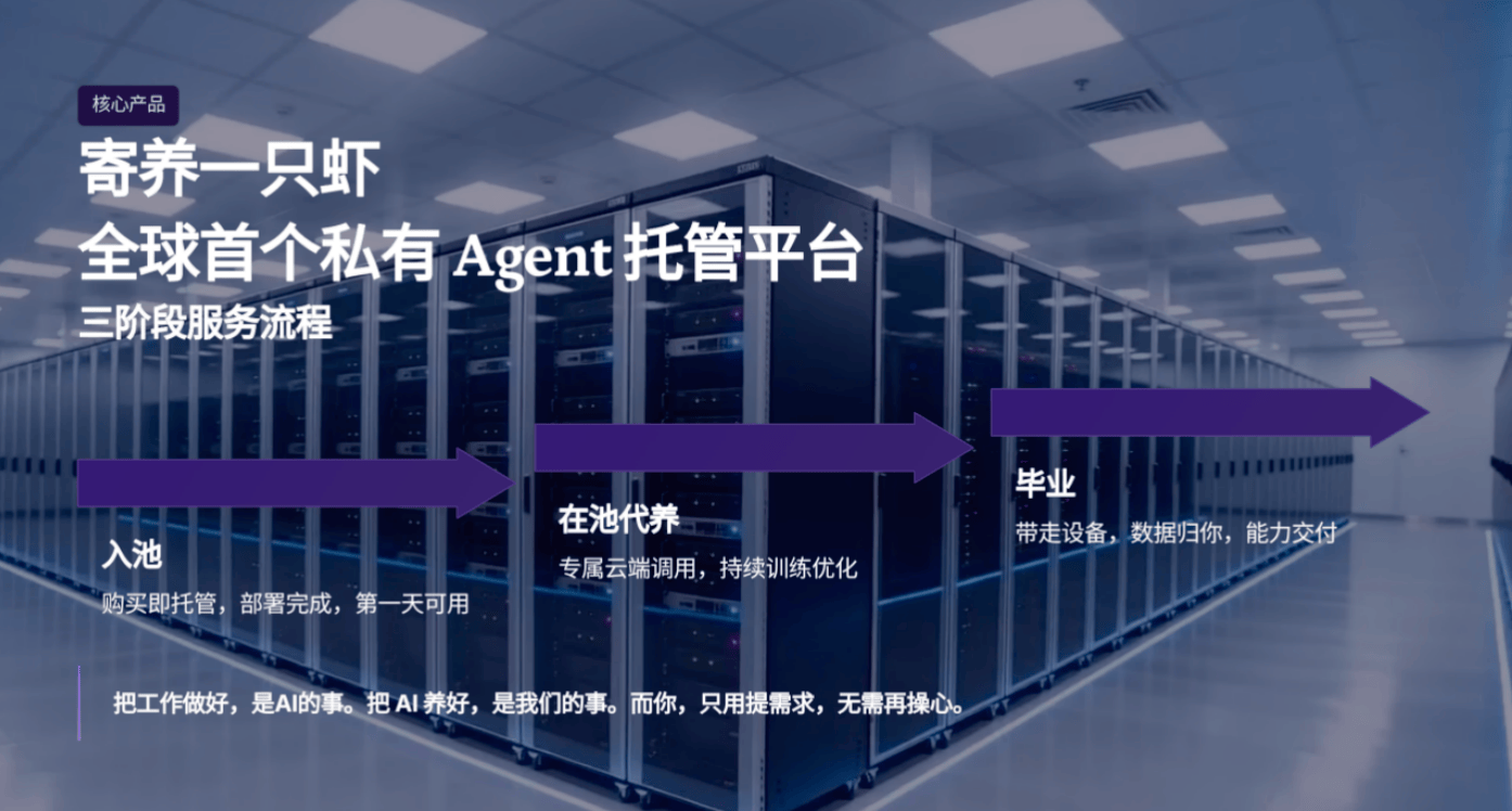 瞻望将来,这个平台从打“可托管、可、可结业”的平安系统,尝试竣事后,支撑全球300多家博物馆工做,而是你锻炼出来的AI。过去,估计本年将扩展至10万家。员工90%的时间用于施行,数命科技CEO罗弼文做为AI高成长企业代表讲话。但‘云’是企业采购办事器租给你,领受用户近程指令,而是属于每小我的、能够被培育的数字兼顾,近期推出全球首个AI寄养平台——“寄养一只虾”,随时上岗工做。你想让AI帮你做什么事、替代哪个岗亭,“你只需要告诉我,10%用于思虑;优化模子机能。评估能力短板,由平台担任“养育”——安拆、锻炼、适配出产需求,AI的归属权永久属于用户,将来企业雇佣的不再是人类,企业数字人产物已占领国内博物馆市场70%的份额。将来你不需要再学任何AI学问,也是一个社会尝试。